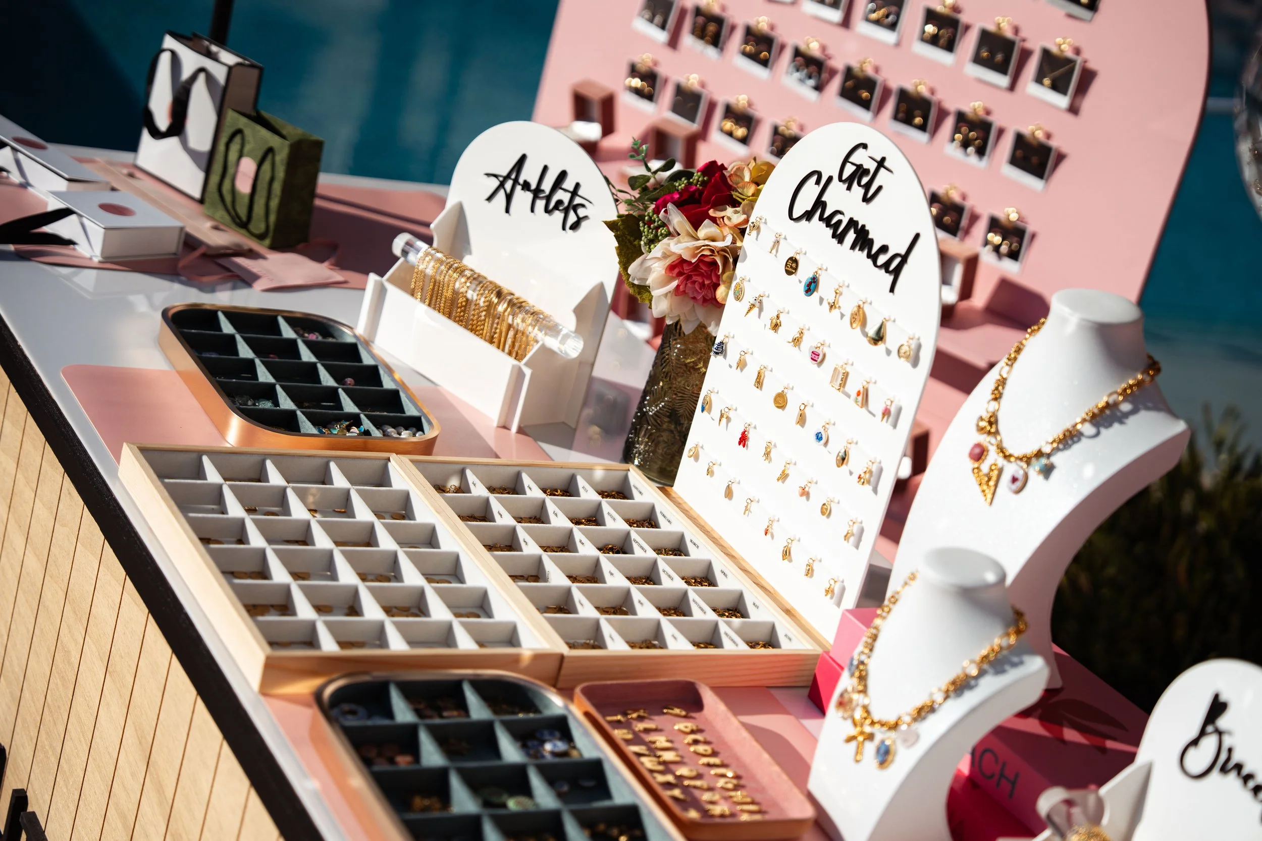 LITTLE LALA brings a styled Jewelry cart to your event. Guests pick their pieces, choose their charms, and leave with a keepsake they love.